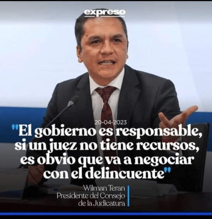En una publicación que circula en Facebook se asegura que el presidente del Consejo de la Judicatura, Wilman Terán, declaró textualmente: “El gobierno es responsable si un juez no tiene recursos, es obvio que va a negociar con el delincuente”. Esta información es falsa. Terán ya desmintió estas supuestas declaraciones anteriormente.