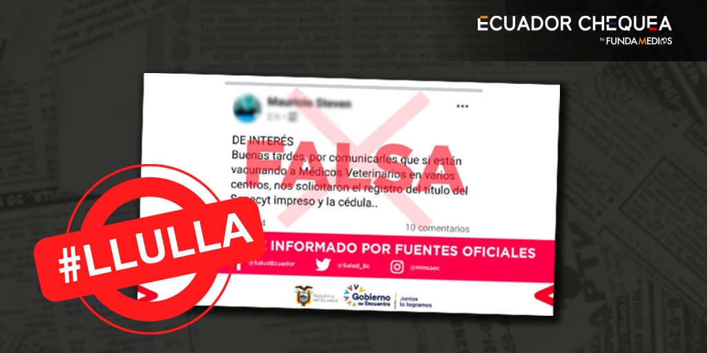 La información oficial es difundida y compartida a través de nuestros canales institucionales en redes sociales y web. pic.twitter.com/Zm8lRkuws9— Ministerio de Salud Pública 🇪🇨 (@Salud_Ec) June 6, 2021