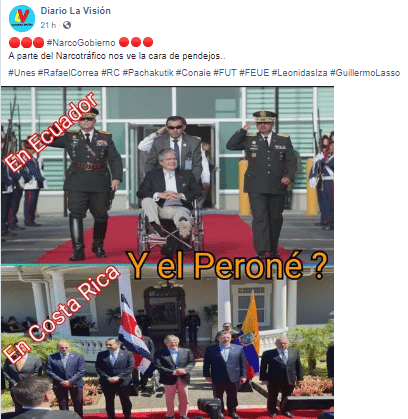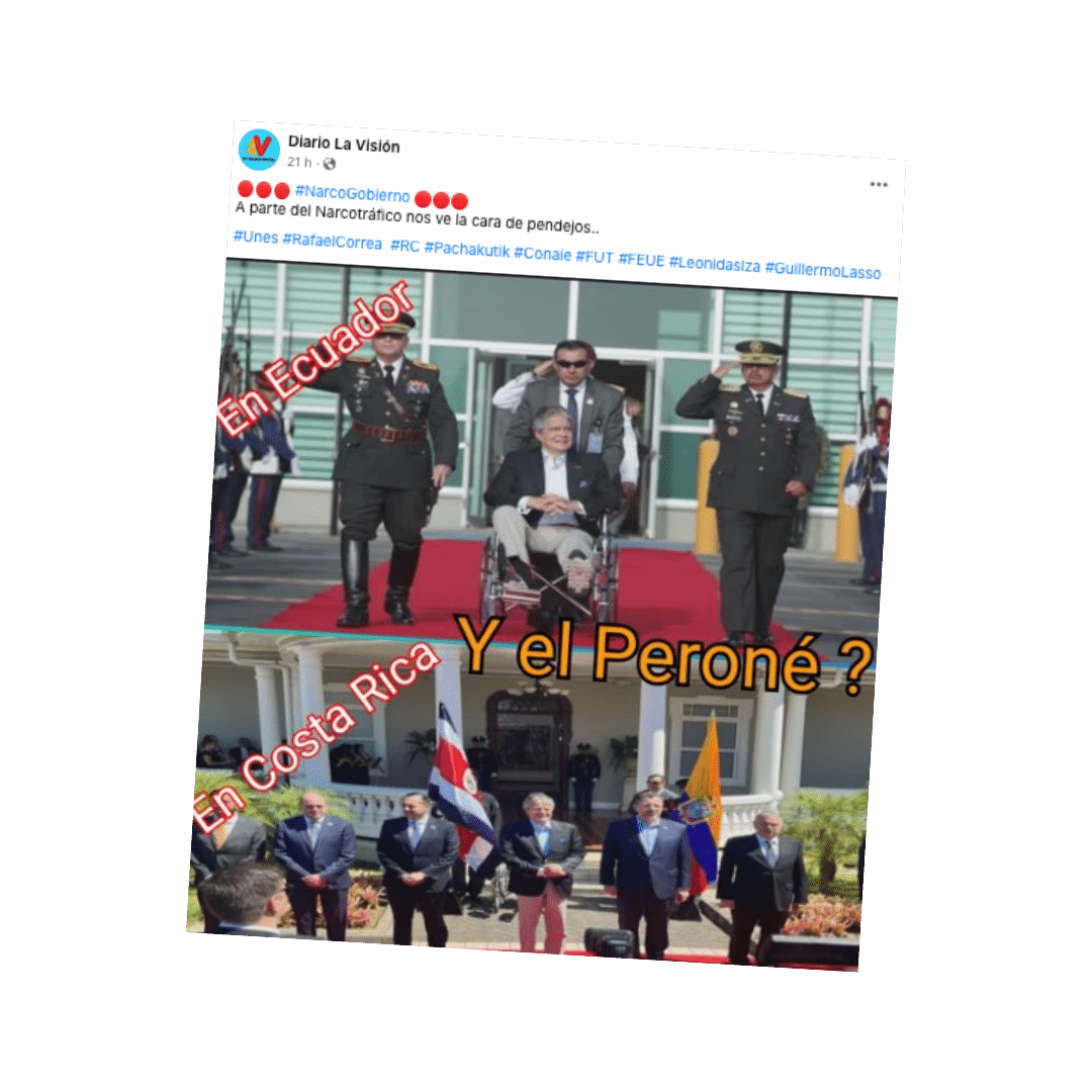 Un ejemplo de esto es el post que circula en Facebook que asegura que el Gobierno le ‘ve la cara’ a los ecuatorianos, porque Lasso está sin silla de ruedas en su viaje a Costa Rica, mientras en Ecuador sí la usa, incluso en el aeropuerto, a su salida a este viaje. Calificamos esta información como engañosa. Varias fotos del Presidente en Costa Rica muestran al mandatario en silla de ruedas y, pese a que las dos fotos son reales, la publicación manipula la información. Aquí te contamos más.
