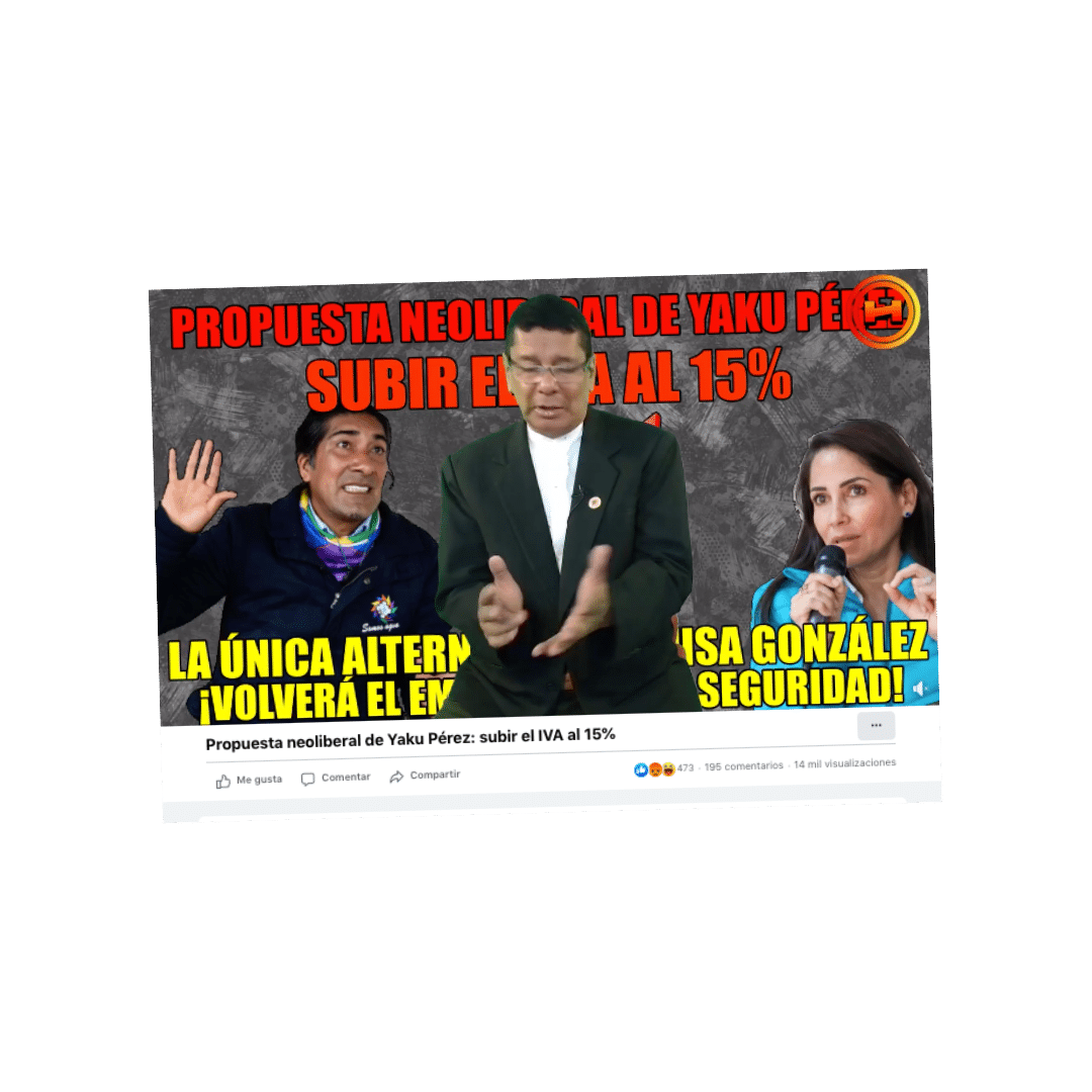 En los últimos días se ha difundido ampliamente en varias cuentas de Twitter y Facebook una publicación que afirma que existe una «propuesta del candidato Yaku Pérez de aumentar el IVA del 12% al 15%», propuesta a la que se califica como neoliberal.